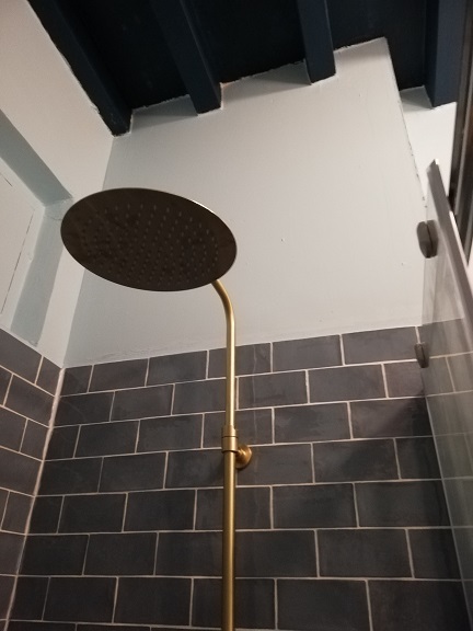 The only problem was the size of the passage way, it was going to be a very large guest toilet! Then, whilst sipping a glass of wine, I had a Eureka moment, why not create a shower room with a toilet. Adding a shower, to the toilet and basin needed, was neglible in terms of effort and expense involved … So I was now going to have a downstairs loo and shower room!