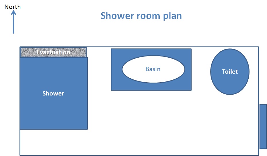 The next thing I looked at was window size, room orientation and light coming in … In terms of windows, there was a window over the opposite door that I was going to block up, a shower room does not really need a door to the new patio! This left an opportunity for a bigger window, but thinking things through, that would mean a larger window on to a terrace where people will be sitting whilst eating and drinking, even with an opaque window this is probably not ideal for someone sitting on the loo. So I decided to keep the existing glass pain over the door, nice and high, and giving light whilst mainting privacy. Also, the higher the window is, the more light you get in to the room. So, I now had a west facing room with a very small window.