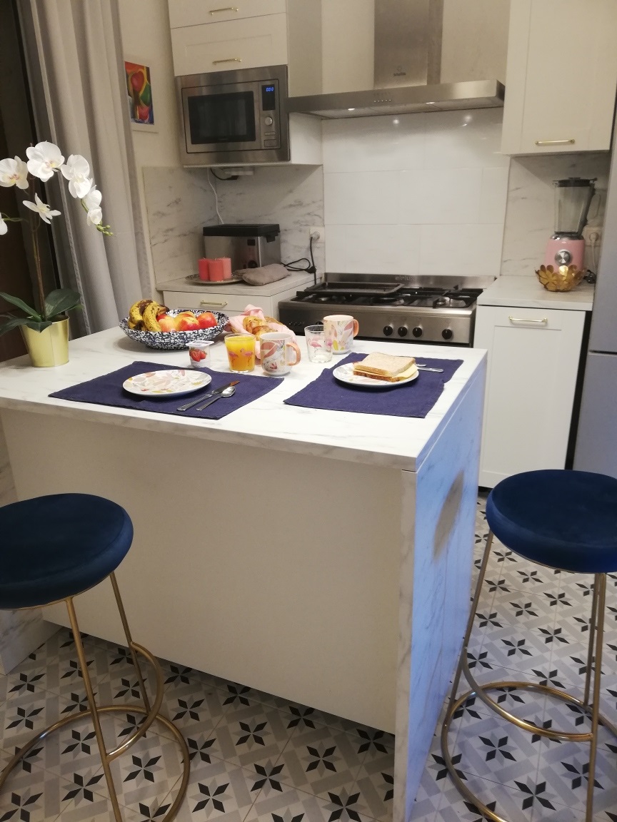 In the kitchen, the floor tiles had already been replaced. Probably in the 80s looking at the tiles. They were a horror, far too modern, and really bad quality. I did try intially to paint them with special floor tiles paint, but after a while the paint wore off, and then got walked all over the house. The day they were covered with new “old style” tiles I celebrated!!