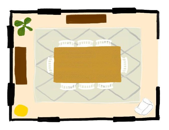 Ensuite, il y a comment vous positionnez vos meubles sur les tapis. Si vous utilisez un tapis dans votre coin salon, alors votre grand canapé rembourré doit avoir les pieds avant sur le tapis, et tous les fauteuils et la table basse centrale doivent reposer complètement sur le tapis. Pour une table à manger et des chaises, la table et les chaises doivent reposer sur le tapis et, idéalement, lorsque vous retirez vos chaises de salle à manger pour vous asseoir, elles doivent toujours rester complètement sur le tapis.
