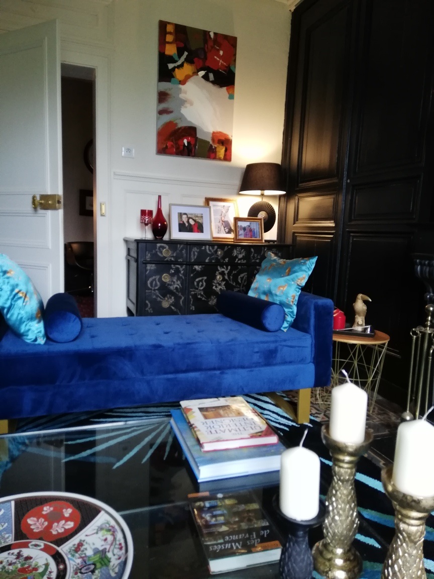 My next project, in line with my priorities, was to decorate the lounge, or Salon, as it is called in French. … I love entertaining and needed a cosy and comfortable space to share pre-dinner drinks and nibbles.