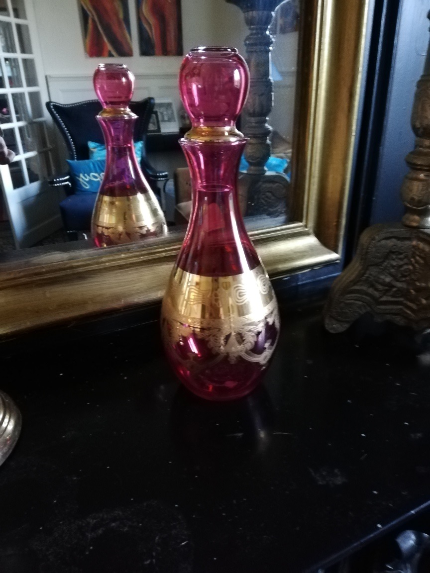 I also had some long adored glass and china that I wanted to incorporate … A black and white ginger jar, a dark pink and gold Murano water carafe, and a red and white Chinese large deep plate … So again my dominant colour was again in the reds … with black and white as neutrals ..